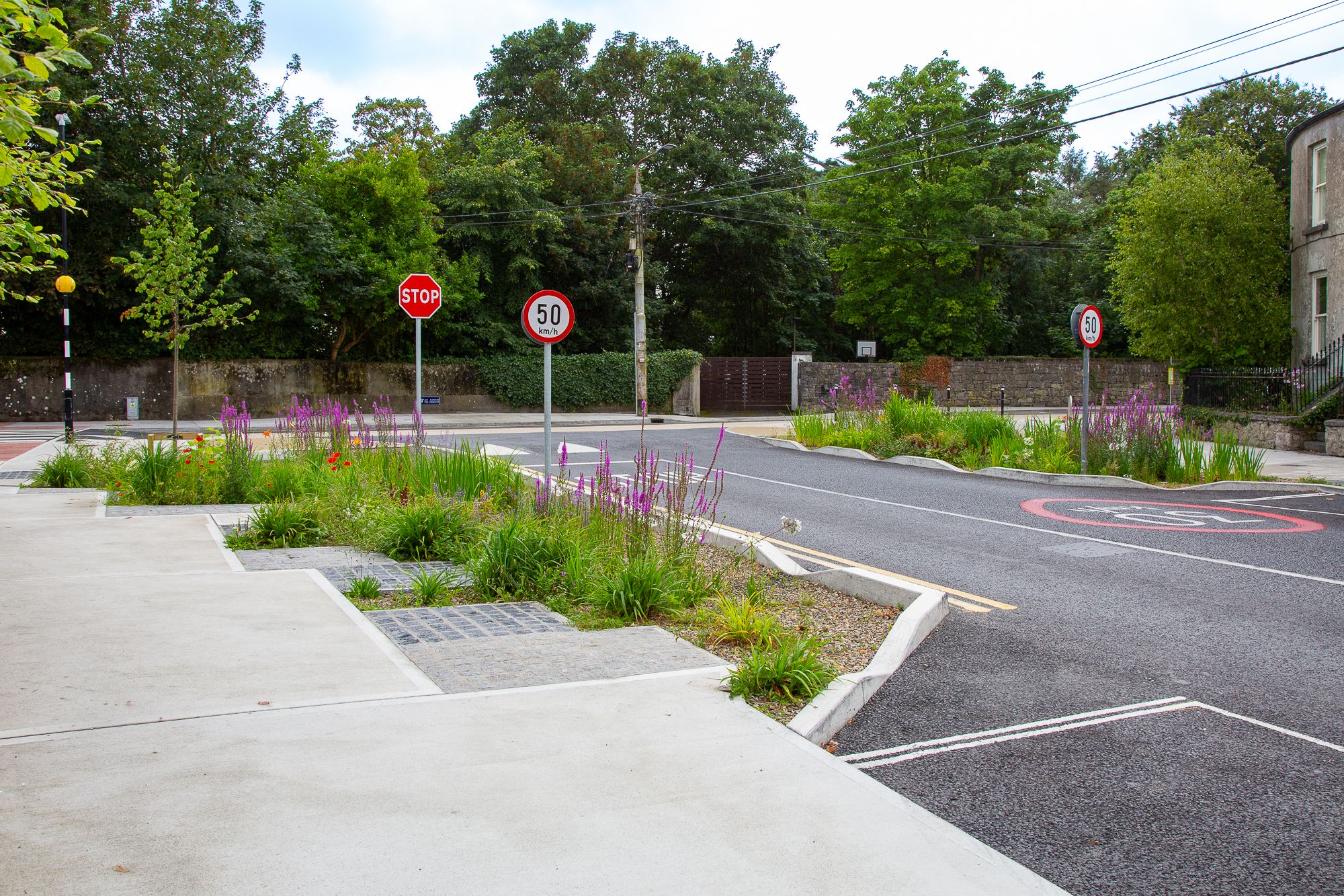 Galway’s first rain gardens – now thriving on Sea Road, managing stormwater, reducing flood risk and enhancing green spaces.
