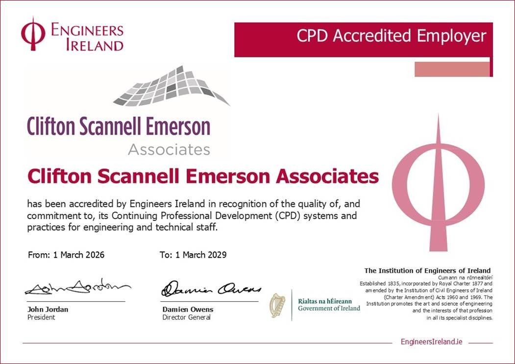 following assessment and audit, CSEA have achieved the highest level of certification as a CPD Accredited Employer with Engineers Ireland.